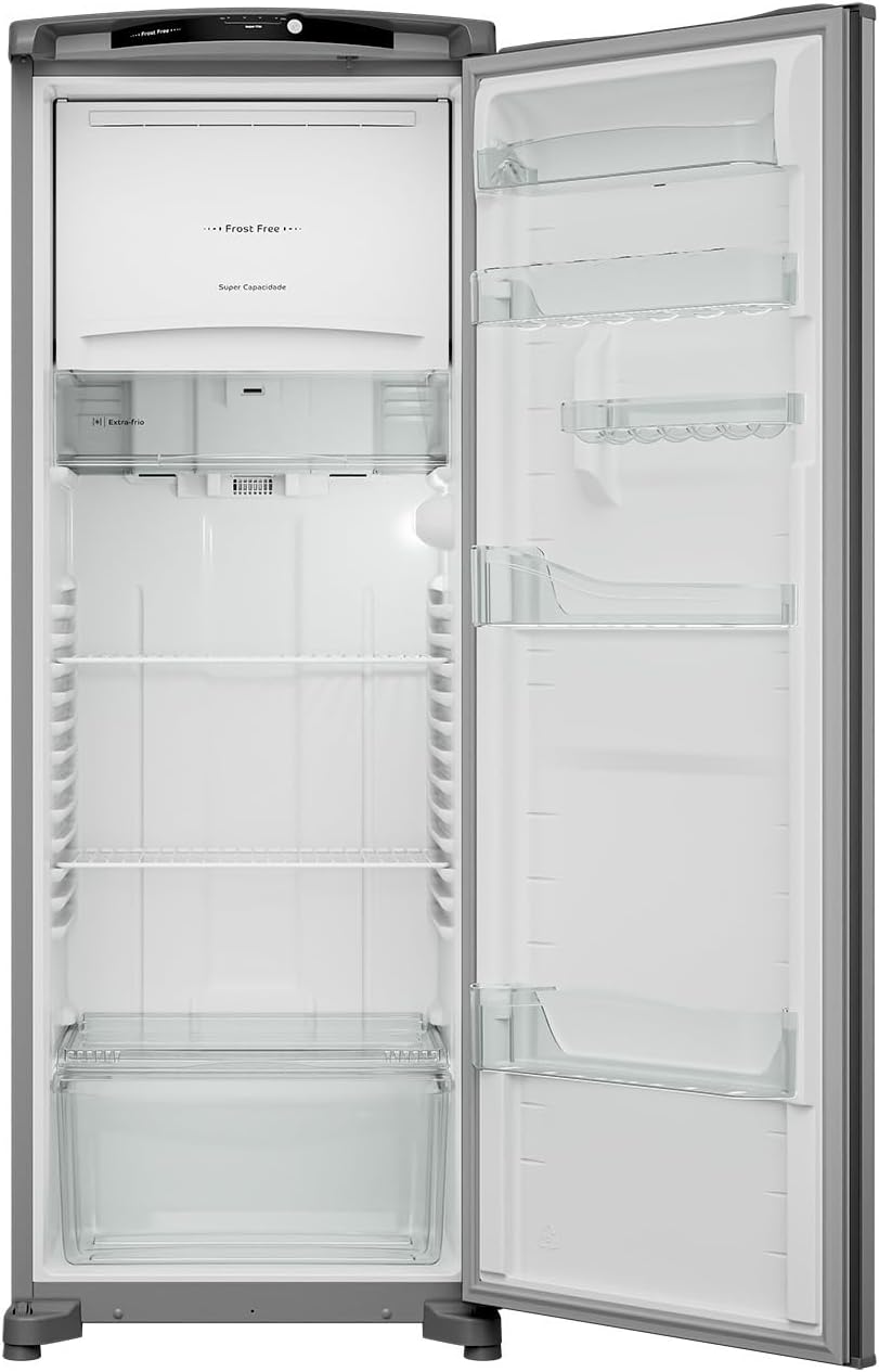 O sistema Frost Free elimina a necessidade de descongelamento manual, evitando o acúmulo de gelo e tornando a manutenção muito mais simples. Seu compartimento Espaço Extra Frio é ideal para armazenar alimentos que exigem maior refrigeração, como laticínios e frios, mantendo-os conservados por mais tempo.