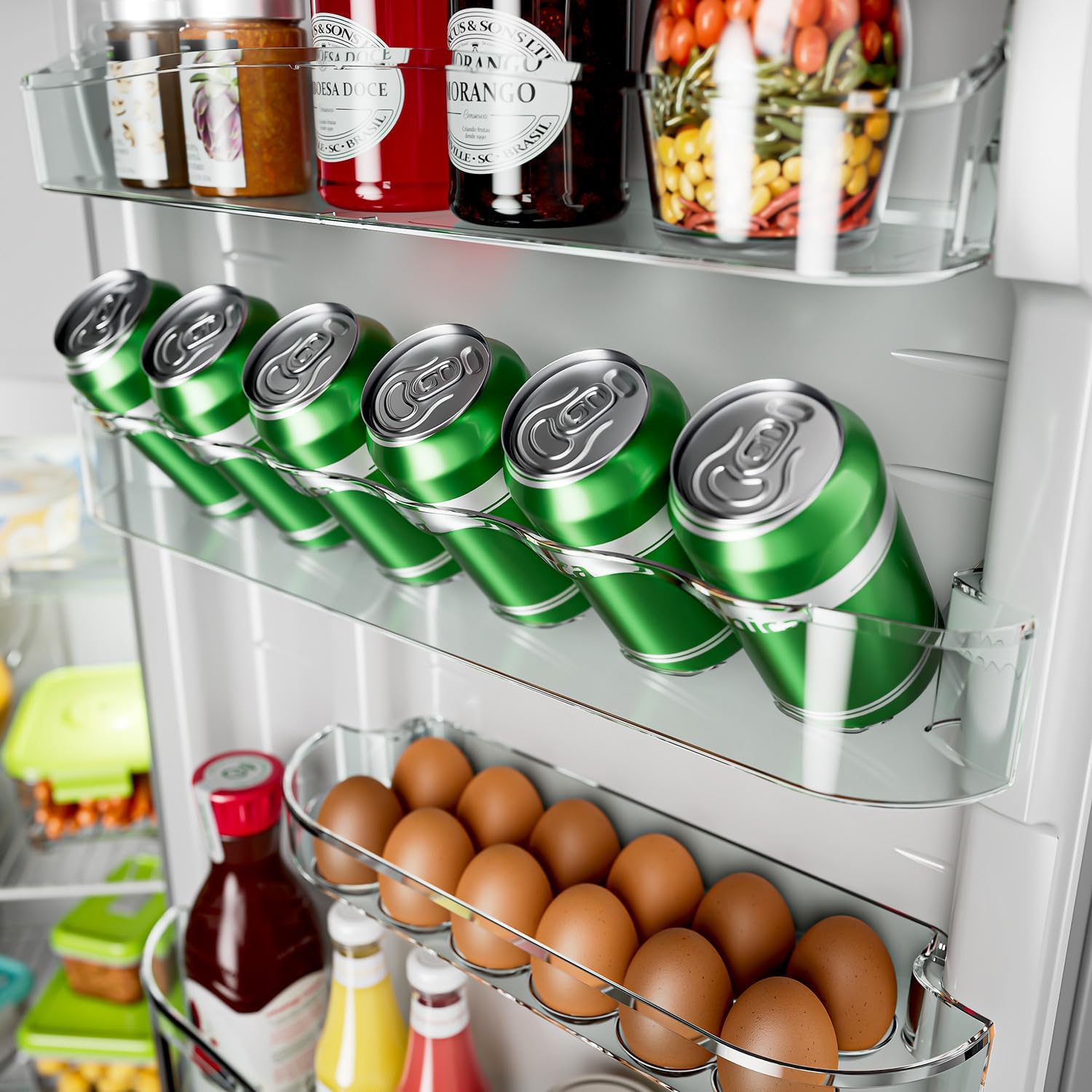 O interior é bem distribuído, com prateleiras ajustáveis que facilitam a organização dos alimentos e permitem adaptar o espaço conforme a necessidade. O congelador é espaçoso e funcional, oferecendo boa capacidade para armazenamento de produtos congelados.