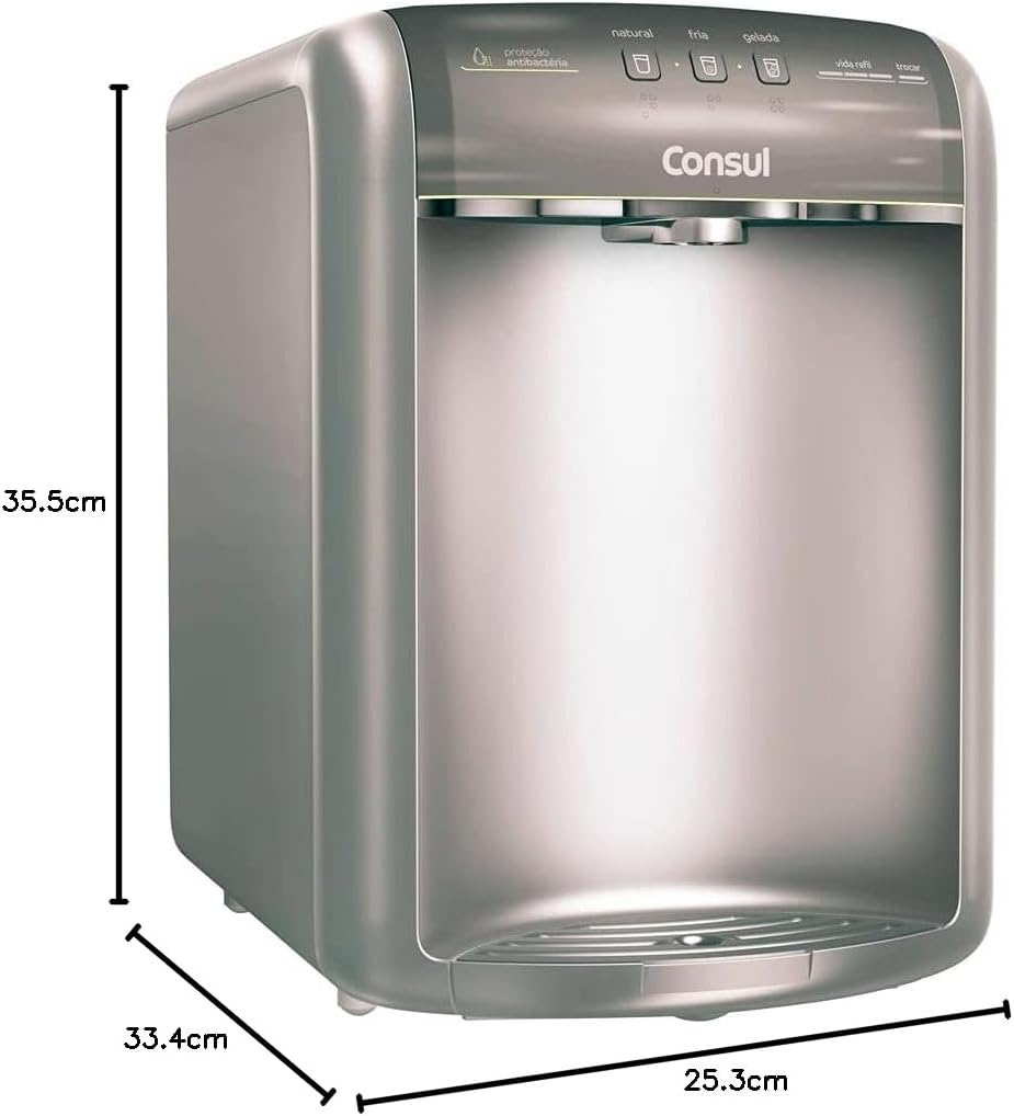 O Purificador de Água Consul CPB36AF na cor Titanium é a escolha ideal para quem busca praticidade, eficiência e água de qualidade no dia a dia. Equipado com refrigeração por compressor, ele garante água sempre gelada, mesmo em dias mais quentes, oferecendo muito mais desempenho em comparação aos modelos eletrônicos.