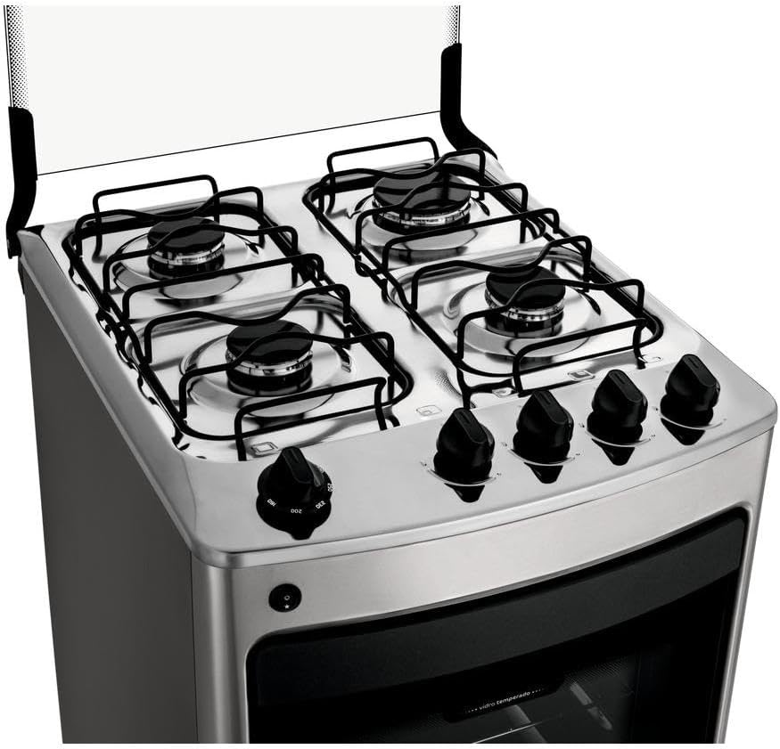 Equipado com acendimento automático, o modelo proporciona mais comodidade e segurança no uso diário, eliminando a necessidade de fósforos ou isqueiros. Seus queimadores oferecem aquecimento rápido e uniforme, garantindo melhor desempenho no preparo das refeições.